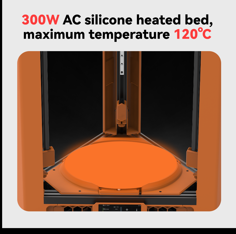 * 300W AC silicone heated bed, maximum 120℃